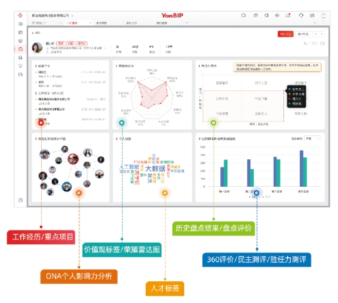 用友BIP数字人力,基于企业数智化新底座iuap的数据中台、智能中台,提升了智能化能力。在人才发展方面,从人才的“定义、发现、继任、发展”四个阶段进行系统对业务的数字化应用加持。