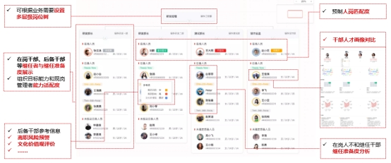 利用在线九宫格快速定位人才,做好人才盘点,快速识别企业人才的质量与数量, 让人才布局更 “合理”;同时满足快速招人,精准选人,人岗速配,让优秀的人才浮出水面。